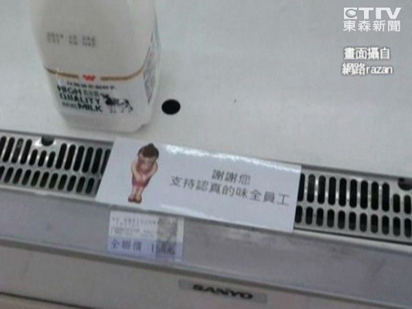不過記者到超市時,已經看不到那張小紙條,賣場回應說,應該是廠商補貨時偷偷放上去的。這樣的情況看在前味全員工眼裡,顯得相當不捨,他只希望抵制行動趕快停止。