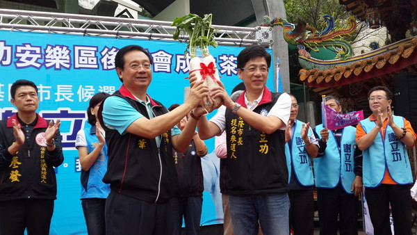 9合1大選倒數36天,謝立功展現組織力量,25日再增安樂區與仁愛區後援會,每一場有超過300人參加,該區議員也全部出席。謝立功上台致詞時略顯激動地表示,雖然許多人覺得他太傻,才會投入這場艱困無比的選戰,但他基於對基隆的情感,所以從不後悔,也絕不怯戰,因為「天公一定疼憨人」,只要他一步一腳印,基隆一定會雨過天青。