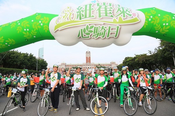 全台規模最大的自行車活動「安麗紐崔萊心騎日」堂堂邁入第六年,今年的報名人數再創歷年新高,全台近2萬1千人次報名參與,事前有12位懷著夢想故事的心騎士,完成為期10天,全長1000km的環台挑戰。10月26日台北站由安麗總裁-劉明雄熱情領騎,還邀請今年最火紅的雙胞胎左左右右為心騎士們加油打氣,讓不少車友直呼明年再來。