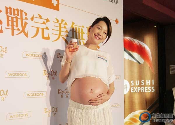 六月在Bio-Oil孕婦按摩油發表會場秀出光滑無瑕的大圓肚,引來現場媒體爭相拍照。六月也現場示範自己平常按摩肚皮的方法,強調自己超怕妊娠紋上身,5個月前都勤擦按摩油保養,連腰部、後背等小地方都沒放過。不過後來隨肚子變大,擦油按摩就變成老公李易的工作,也是夫妻每天2次的「閨房樂趣」,讓她到目前8個月了,自豪肚皮依舊平滑沒有任何細紋。