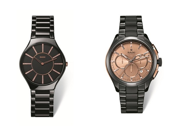 以高科技陶瓷聞名的雷達表(RADO),因防刮耐磨、質輕抗過敏的特性而受到大眾喜愛。最近推出的系列腕錶一致主打秋冬夯色玫瑰金,呈現出黑陶瓷錶殼錶帶與玫瑰金錶盤、時刻的組合,綴以美鑽之後,更讓錶款散發著低調卻微華麗的風采。