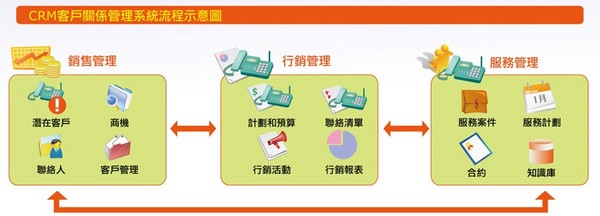 使用中華電信雲端CRM服務,企業無需花大量成本自建CRM系統,只需透過帳號申請,即可以最快及最彈性的方式導入行銷、銷售與服務三大模組,迅速建置客戶資料、商機及訂單管理,進行客戶需求與產品銷售狀況分析,並可透過簡訊、傳真與e-DM等行銷工具及搭配各式追蹤統計圖表,讓企業不只能對歷史的銷售記錄與客戶行為進行分析,同時還能採取及時的行銷活動,隨時掌握企業商機,快速找到決策關鍵點。