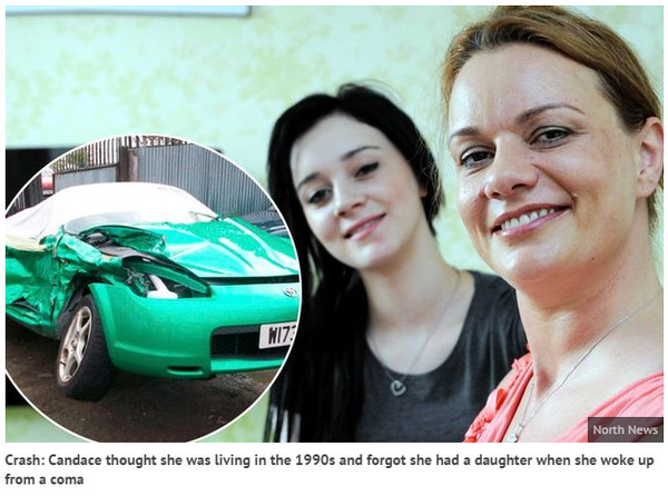 英國模特兒安黛琪(Candace Emptage)2010年時發生嚴重車禍,昏迷6周後,就在家屬決定放棄治療前,意外發現她的手指動了一下,因此在醫師搶救後,順利從昏迷甦醒。卻發現,她的記憶卻從此停留在20年前,甚至堅持已經過世的英國黛安娜王妃還活著,更在當時忘記自已有一名14歲的女兒。
