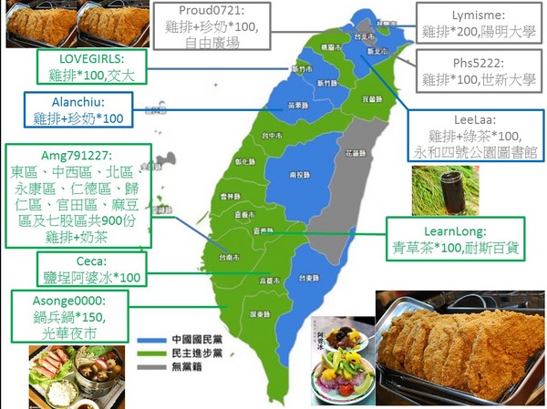 ▲鄉民boggae6日晚間統計大家的祭品後,製作一張「全台祭品圖」。(圖/翻攝自PTT)