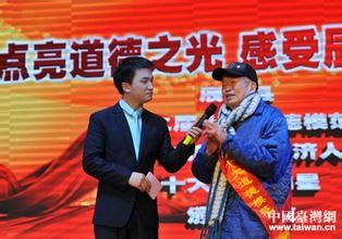 ▲臺灣老夫婦25年花光積蓄資助湖南百名窮學娃,圖為曾祥來(右)獲獎。(圖/新華社提供)