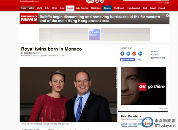 摩納哥王室傳出喜訊!王妃夏琳•維德士托(Charlene Wittstock)10日產下龍鳳胎,男嬰成為王室繼承人。