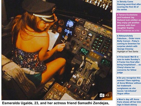 國外各家媒體紛紛報導此事,墨西哥女歌手23歲烏嘉爾德(Esmeralda Ugalde)及她19歲演員友人森德嘉斯(Samadhi Zendejas),在搭乘班機時,進入駕駛艙內遊玩,不但帶著機長帽子擺出各種姿勢拍照,甚至還手握操控桿,烏嘉爾德還將照片放上她的推特,引起軒然大波。