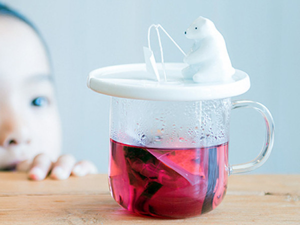 將茶包上的棉線輕輕的鉤上北極熊的小釣桿,不必再擔心茶包悄悄溜進杯裡。