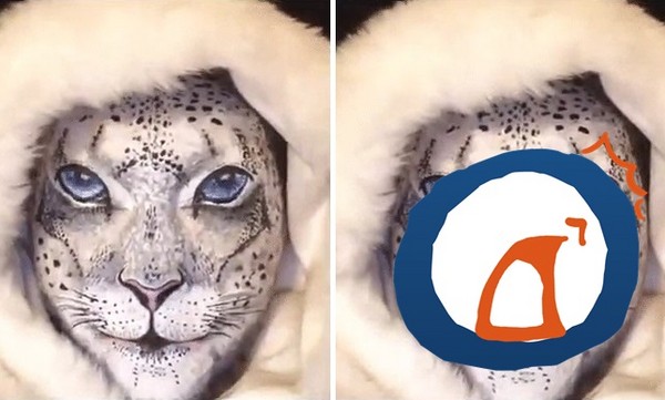 這張雪豹照是由網友MarkovManiac於7日上傳到Reddit上,短短一天就引發了網友的熱烈討論,從動圖中可見,這隻雪豹先是一動也不動地縮在羽絨帽中,隨後嘴巴一動,露出的竟是兩排整齊的牙齒,就在眾人疑惑究竟是怎麼回事時,這隻動物的眼睛處,居然又露出了另一雙眼睛,原來這隻不是真正的雪豹,而是「化妝」的成果,而這個超逼真的臉部彩妝,也讓許多網友大讚「太強了!」