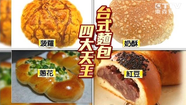 台北市糕餅公會前陣子就號召全台烘焙業者,選出歷久不衰的「台式麵包四大天王」,分別是波蘿、奶酥、蔥花和紅豆麵包。記者為了了解民眾最愛哪款,帶著網友列出的13種麵包,到大排長龍的麵包店外親自邀請民眾票選。經過統計,民眾最愛的台式麵包前3名,分別是奶酥麵包、菠蘿麵包,冠軍當然就是蔥花麵包了,「台式麵包之王」名號果然不是蓋的。