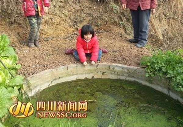 患難見真情!大陸四川省資陽市雁江區松濤鎮金灘村6歲女童王梓穎,看到同年玩伴王躍龍掉進農田邊的池塘中,立刻抓住他的手不讓沉到水底,雙方就維持一樣的姿勢長達40分鐘,直到大人趕來救起。王梓穎說,「我就是不想他掉進去,不然他就死了!」