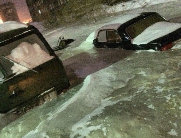▲俄羅斯北部小鎮水管爆裂導致街道被「冰封」,連車子都卡在冰裡動彈不得。(圖/翻攝imgur,下同)