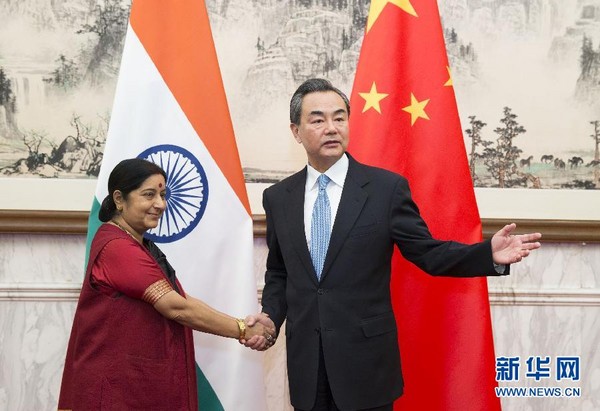 ▲印度外交蘇希瑪.史瓦拉吉到北京進行訪問。(圖/翻攝自新華網)