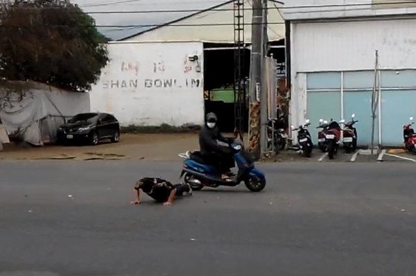 ▲第一段影片中,一名國中生在馬路中央伏地挺身。(圖/翻攝自臉書)