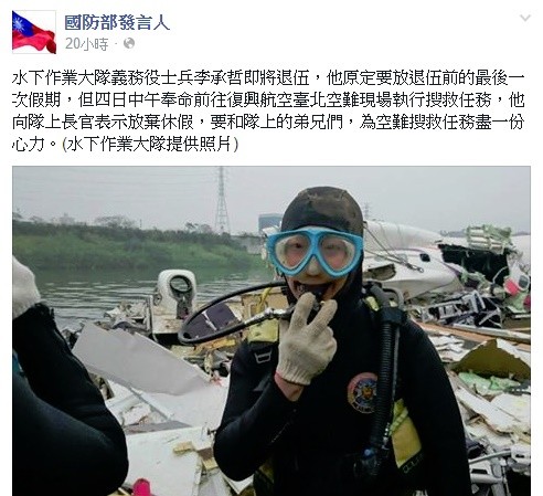 ▲海軍水下作業大隊義務役李承哲。(圖/國防部發言人臉書)