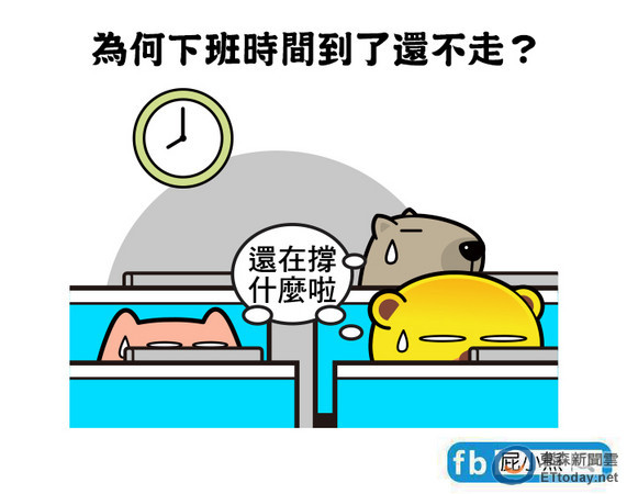 其次是「為何上頭總是喜歡改東改西?」陳穎賜指出,舉凡企劃、計畫書等很少一次就通過,修改的原因,多半只是上司為了展現自己的「專門見解」,但其實改到最後,根本和原先版本差不多;最後則是「為何下班時間到了還不走?」到底是工作做不完?公司規定?A加班費?還是不敢第一個走?
