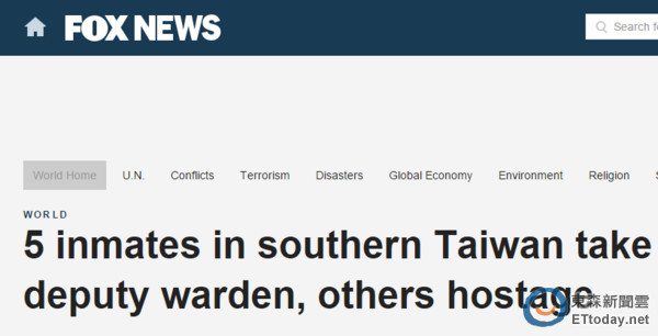 ▲高雄監獄挾持人質事件國際震驚,外媒關注報導。(圖/翻攝自福斯新聞)