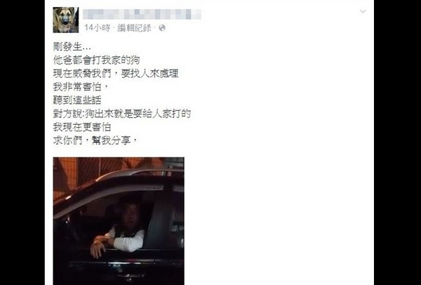 女網友菀君兒在臉書po文,表示自家的狗被鄰居毆打,對方男子還嗆說,「你家有狗,我家也有狗,狗放出來就是要呼郎貢耶」,還嗆說寵物的下場如何沒人知道。為此她只好將影片公開,希望大家幫忙主持正義,果然引發網友撻伐,甚至有人揚言要肉搜打狗男,給他一點教訓。