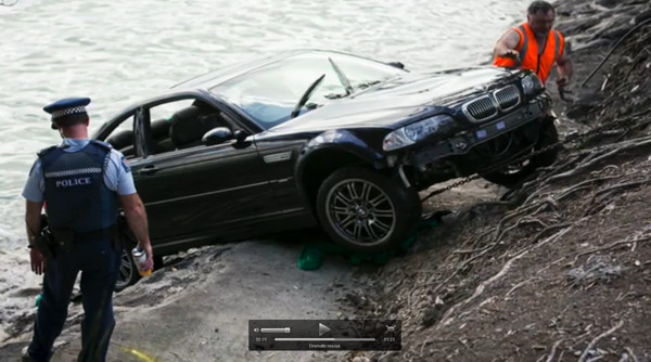 紐西蘭奧克蘭的懷特瑪塔港(Waitemata Harbour)17日下午發生汽車落水事故,一名63歲婦女在將車子開離停車場時,卻意外讓駕駛中的BMW整輛落入附近港口中。所幸有目擊者緊急報案,2名警官也迅速趕到現場,其中一名員警用身體抓住車體,試圖保持平衡,另一名員警則用石頭砸破後擋風玻璃,將人救出。