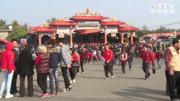 大年初一,嘉義東石港口宮舉辦擲筊送轎車跟純金媽祖的活動,一大早就出現排隊人龍,不少信徒上門試手氣。而在台南學甲的慈濟宮,也在早上發保生金,廟方準備了一萬五千份的保生金,把百元鈔票折成八卦符的造型,要讓領取的信徒,可以保平安。