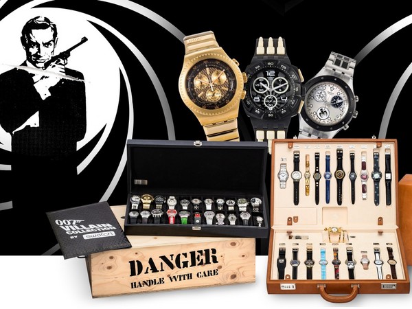 如藏品中其中一款即是2002年推出的「007詹姆士龐德電影系列」手錶,是Swatch為紀念007系列電影40週年所推出的特別版組合。在皮革公事包內有20只手錶,錶帶上刻有歷代007電影名稱及上映日期,非常具有紀念意義。此外,Swatch也在2008年推出「詹姆士龐德反派系列」錶款,蒐羅了電影中各大反派角色,如邪惡前蘇聯特工Max Zorin、金手指和恐怖組織頭目Le Chiffre等,相信007迷看了也會非常興奮。