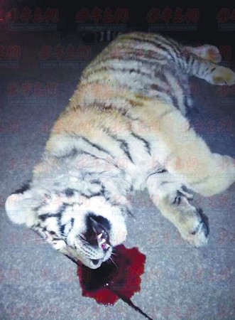一隻死掉的老虎躺在山東一處停車場的地上,發現的民眾嚇得半死。經調查,原來是有人非法馴養老虎,過年放鞭炮,老虎受驚後鑽出籠子,從11樓摔下。