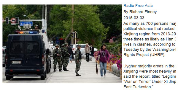 UHRP是設立於美國華盛頓的人權組織,在這項報告中,除了統計新疆地區因動亂死亡人數外,也提及,自從習近平2013年上任大陸國家主席後,在新疆區域使用過多的武力行動,也讓該區的安全狀況有惡化的趨勢。