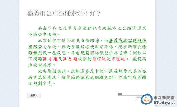 ▲嘉義市針對公車路線整併計畫,舉行I-Voting投票匯集大眾意見。(圖/翻攝自「嘉義市公車這樣走好不好?」投票頁面)