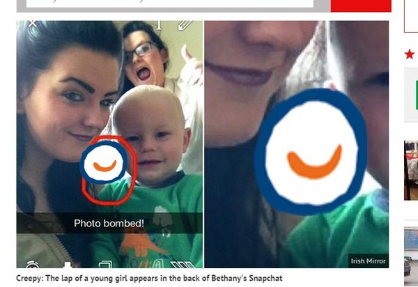根據《每日鏡報》報導,這名疑似拍到靈異照片的北愛爾蘭女子哈維(Bethany Harvey),日前用影音分享應用程式Snapchat與自己的姪子自拍,途中姊姊也加入,形成三人一體的自拍照。哈維表示,事後朋友去家中作客,看見此張自拍照後,詢問照片中間的第四者是何人時,嚇得她直發抖,「當晚一位朋友來我家,指出照片中看起來有名雙手交疊放在膝蓋上的女孩。」