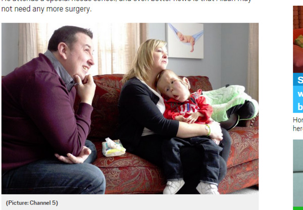 英國4歲男童艾丹(Aidan)出生後染上不治之症,頭和腦部長出大腫塊,導致他不能說話、不會走路,需要家人24小時照顧。儘管如此,艾丹是一個非常喜歡笑、需要擁抱的孩子,爸爸形容他是「世界上最稀有的男孩」。