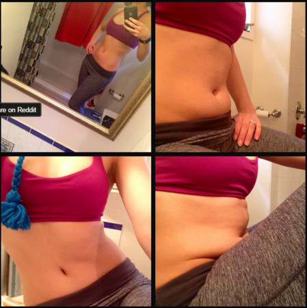 ▲女網友PO出自己有「三層肉」的照片。(圖/翻攝自Imgur)