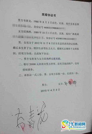 ▲邱燕樺與韋青龍結婚2年多,仍不敵現實壓力決定離婚。(圖/翻攝自南海網,下同)