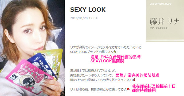 藤井Lena更在今年初上網分享提到,她現在每天睡前與重要工作前十日起,都會密集敷SEXYLOOK,尤其愛用保水力深入又持久的升級版「SEXYLOOK 極美肌深層水潤純棉黑面膜」,好讓皮膚水嫩滑溜超吃妝。