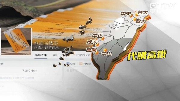 中山大學資管所研究生創立了一個代購高鐵票的服務系統「坐領高鐵票」,1年多來已經幫學生代購了2千多張票,服務網絡遍佈北中南7所大專院校。學生學習網路平台創業,行銷、營運步上軌道後,最近遭質疑代購「酌收」30到50元的服務費和黃牛沒兩樣,因為高鐵票屬專賣制,一但轉售可處10倍罰鍰。