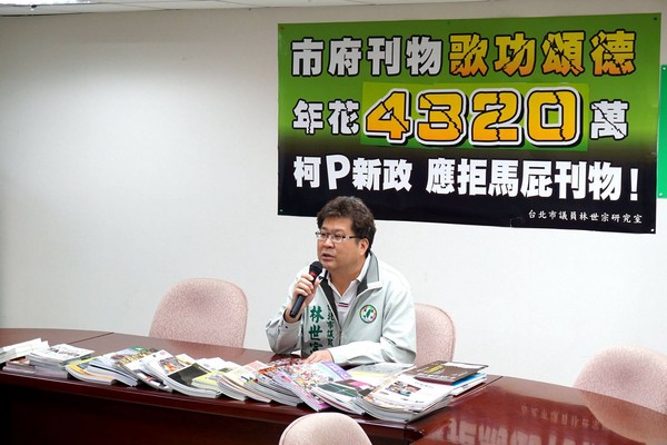 ▲林世宗質疑市府刊物歌功頌德,一年花費4320萬。(圖/林世宗研究室提供)