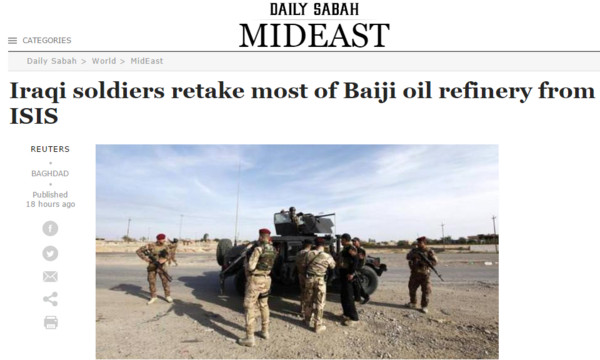《沙巴日報》指出,白吉煉油廠位於薩拉赫丁省(Salahuddin)的大城摩蘇爾(Mosul),過去每日能產出17萬5000桶油,城市卻在去年6月遭IS攻占,廠區也被奪走,伊拉克雖曾短暫奪回,但沒多久再度喪失掌控權。