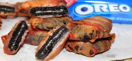 受到美國OREO狂熱分子的影響,日本廚師很好奇的將它改良,用培根把OREO包起來,牙籤固定後,再沾混合了麵粉、水、蛋的麵衣,丟進180度的油鍋裡炸,等到變成金黃色就可以起鍋。OREO培根捲外鹹內甜的口感,不少人覺得很美味,不過也有人覺得味道很怪,評價相當兩極。