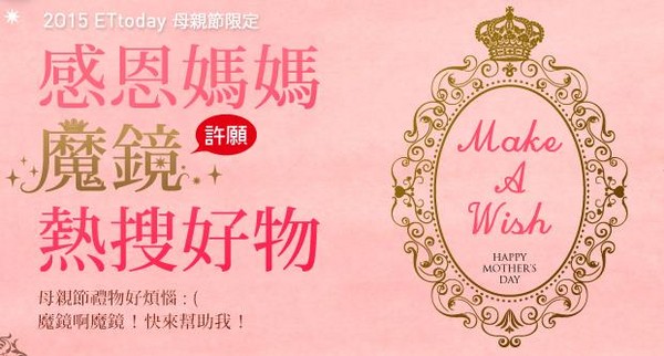 ETtoday母親節限定活動「感恩媽媽魔鏡許願 熱搜好物」,已於5月10日完美落幕,感謝各位雲友熱情參與和支持,相信各位的心內話已傳遞到母親的心中,ETtoday讓大家過完母親節接著送母親驚喜大獎,有沒有好貼心阿!恭喜以下得獎者!《ETtoday東森新聞雲》將於近期寄出通知信,得獎者請於5月20日(三)18:00前回覆相關資訊至et_events@ettoday.net,逾期視同放棄中獎資格喔。
