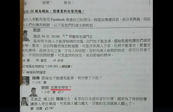 為何亞綸又中槍了?有網友轉貼「整個很成功高中」的圖片並上傳八卦板;據悉這是一份歷史考題,命題者假設古代人都有臉書帳號,並設定眾人在臉書留言的模擬情境;其中,陳壽表示「節儉也不能避免亂事」,班固則回覆「您歷史學家?」卻被眼尖的網友發現語氣有異,直呼「根本是炎亞綸第二啊!」