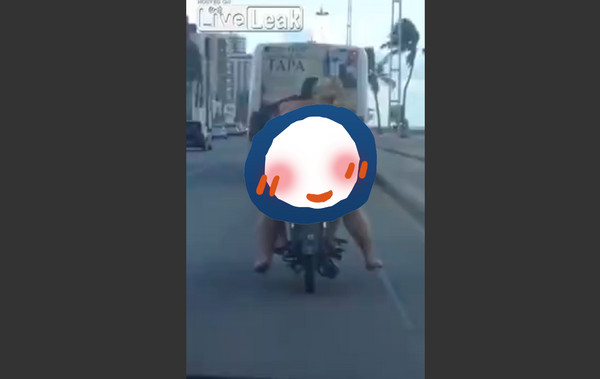 25日在影音平台LiveLeak上有一部影片受到網友討論,內容是巴西一名身穿比基尼的金髮豐腴女子坐在摩托車後座的畫面。不少人認為,這個女子穿著比基尼坐在機車上的畫面相當驚人,但更危險的是不僅沒但安全帽,腳下也沒穿任何鞋子。
