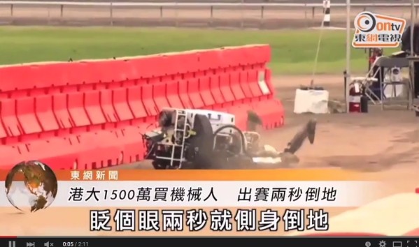 ▲港大花1500萬元購買的機械人,比賽時竟然只走了2秒就跌倒!(圖/翻拍YouTube/東網電視)