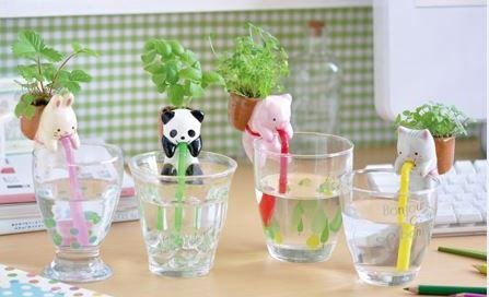 辦公室內養小動物難免會影響到同事,但同樣有生命的植物不吵不鬧,照顧起來輕鬆許多,若再搭配可愛的盆栽,療癒指數大增。日本療癒小物廠商 Chuppon 從植物光合作用所產生的吸力得到靈感,讓可愛動物們揹著小盆栽,趴在杯緣努力用吸管吸著杯中的水,灌溉背上的植物,3-4天後植物慢慢發芽,療癒辛勞的上班族。