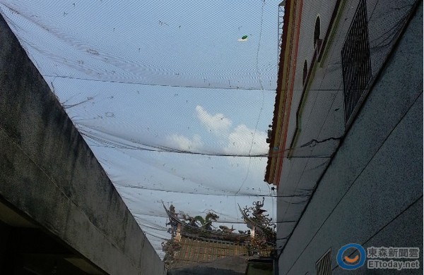 ▲正殿通往後殿的上方空間,也全都網住。(圖/記者楊蕙綾攝)
