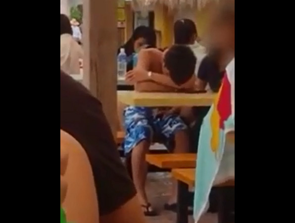 網友日前在「爆料公社」上傳一支14秒短片,並表示事件發生在台中知名的月眉(麗寶樂園)。影片中,只見一名上半身赤裸、下身穿著海灘褲的男子似乎玩累了,正趴在桌上休息,身旁不知道是否為女友的長髮妹,就這麼伸出右手移到桌下在男子褲上搓揉,邊搓邊打哈欠。