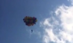 為了替自家清潔用品打廣告,1名居住在加拿大亞伯達省卡加立(Calgary)的26歲男子丹尼爾(Daniel Boria)竟乘著110顆氦氣球「飛上天」,宛如電影「天外奇蹟」真實版!但這個危險動作也讓他付出代價,不但傷到腳,還被警方拘留。