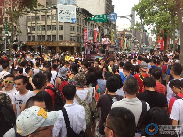 ▲伴侶盟捍衛婚姻平權遊行11日登場,並先在國民黨部前要求派代表「踹共」。(圖/記者陳明仁攝)