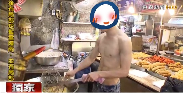 基隆信義市場有「天婦羅小鮮肉」!23歲林國恩體校出身,練出六塊肌的好身材,他在炸天婦羅攤位幫忙,不到2坪的小攤一天就要做超過200斤的量,無論是捏魚漿或下鍋炸。