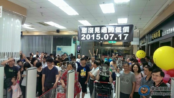 為了搶攻暑假商機,量販業者大潤發今(17)日舉辦超級星期五活動,端出Acer、Sony、Asus...等品牌,祭出最低4折優惠,前一晚就出現排隊人潮,凌晨12點活動開始,立即湧進大批民眾進場搶購,不少商品瞬間秒殺。大潤發表示,活動開跑首日,來客數比上次活動多出4成,創下近30萬人次前來消費,業績也增加6成。