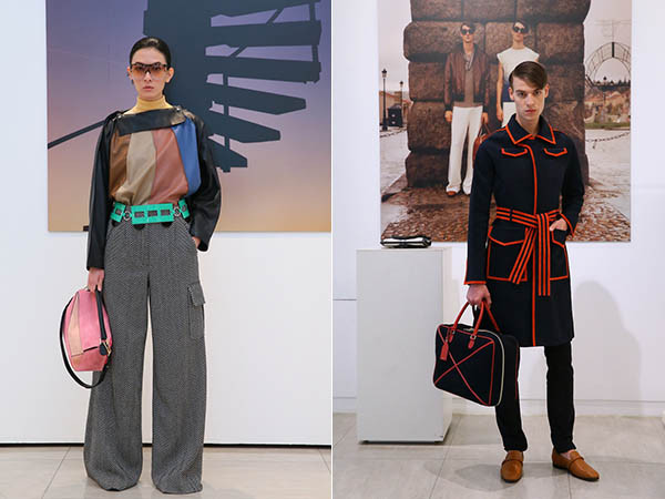 女裝配件部分,熱銷的puzzle手袋運用粉嫩色調的麂皮面料,更有冬天的氛圍;另外,10月即將上市的新包款Barcelona手袋,三角型的金屬插栓釦飾細節更是品牌註冊專利,幾何線條的有趣設計也是Jonathan一直喜歡的設計元素。男士配件如同亞麻面料的nappa小羊皮成為品牌經典Amazona公事包的有趣面料,格紋亦或是亮色細節都是主打。