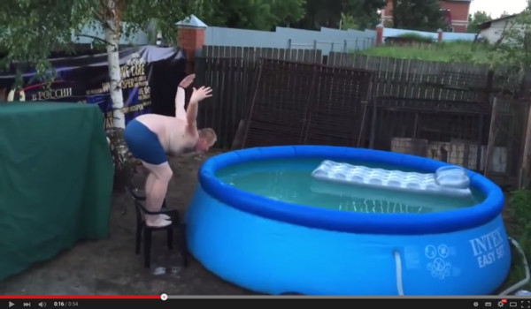 夏天到了,許多民眾會選擇到游泳池戲水降溫,在國外,也有不少人會在家裡運用充氣式游泳池享受愜意的午後。近日影音網站YouTube上流傳一段爆笑影片,一名在家中嘗試站在椅子上跳水的男子,卻疑似因為椅子承受不住他的重量,讓他整個人跌趴在充氣泳池上。►►►要聞+趣聞,鎖定《ET即時》粉絲團就對了!